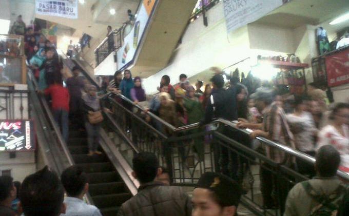 Kepanikan begitu kentara di wajah-wajah pengunjung Pasar Baru Bandung Trade Center yang terletak di Jalan Otto Iskandardinata Nomor 70, Senin (1/9).