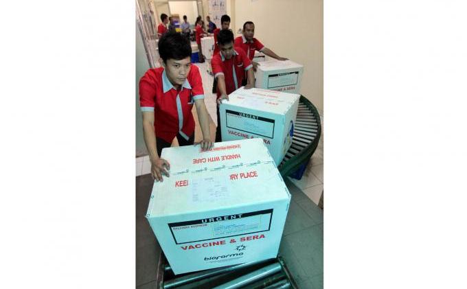 PT Bio Farma (Persero), Jalan Pasteur, Kota Bandung mendistribusikan pesanan vaksin pemerintah melalui Kementerian Kesehatan RI ke Provinsi Lampung, Selasa (30/9/2014).