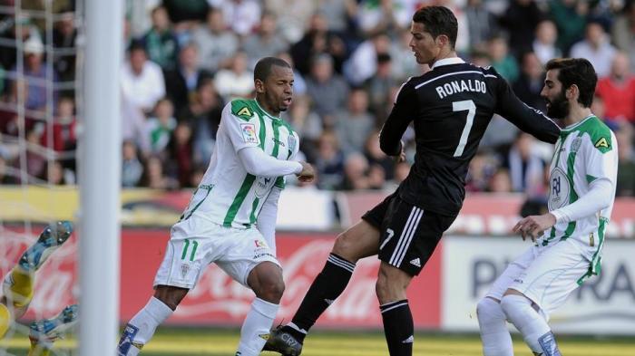 Ronaldo menendang bek Cordoba, Edibar, di kotak penalti tuan rumah pada menit ke-82. Akibat tindakan itu, Ronaldo menerima kartu merah dari wasit Alejandro Hernandez.