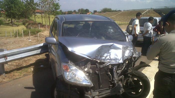 Sebuah minibus mengalami kecelakaan dan ringsek di Tol Cipali, Kamis (16/7).