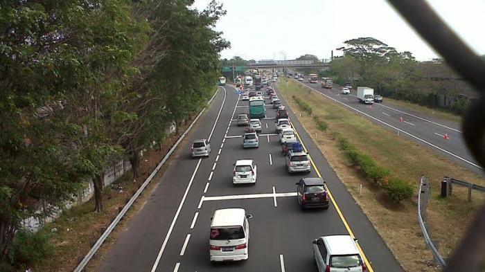 Kendaraan dari arah Jateng menuju Jakarta masih tampak ramai di Tol Palikanci, Rabu (22/7/2015).