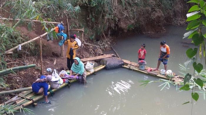 Warga terpaksa menggunakan genangan air Sungai Cisepet yang sudah tercemar