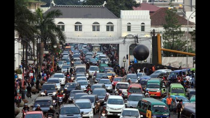 TRIBUNJABAR. CO.ID - Kendaraan bermotor berjalan merayap saat terjadi kepadatan arus kendaraan di Jalan Asia Afrika, Kota Bandung, Jumat (25/12/2015). Libur Natal membuat sejumlah ruas jalan di Kota Bandung sekitar tempat wisata terpantau padat. (*)