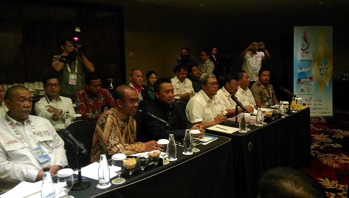 Pantauan Tribun, rapat tersebut dihadiri Menteri Pemuda Olahraga (menpora), Imam Nahrawhi,Ketua PB PON, Ahmad Heryawan, Wakil Gubernur Jabar, Deddy Mizwar, Pangdam III/Siliwangi, Mayjen Hadi Prasojo, Wakapolda Jabar, Brigjen Pol Nana Sudjana, dan lainnya. Adapun rapat digelar secara tertutup di salah satu ruangan Trans Luxury Hotel.