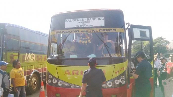 Sejumlah bus diperiksa kelayakannya di pintu masuk terminal. Bus yang layak jalan diperbolehkan untuk melanjutkan perjalanan. Namum, bus-bus yang terkendala kerusakan di sejumlah komponen utamanya dimasukan ke garasi.