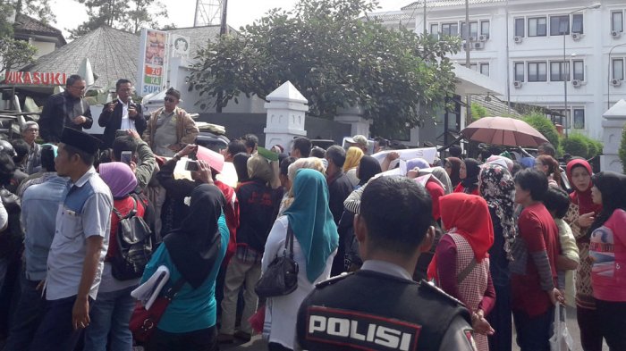 TRIBUNJABAR.CO.ID, BANDUNG – Kepala Dinas Pendidikan Provinsi Jawa Barat, Ahmad Hadadi hadir di tengah massa aksi protes terhadap sistem Penerimaan Peserta Didik Baru (PPDB) di depan Gedung DPRD Provinsi Jawa Barat, Bandung, Rabu (21/6/2017).