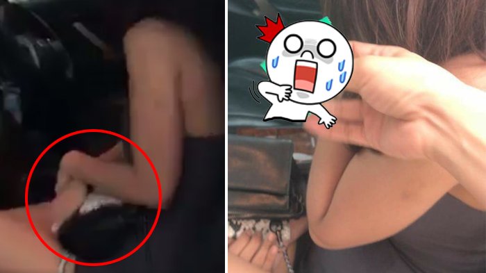 Tidak berselang lama, si perekam mengambil sebuah tas tangan yang dipegang wanita di dalam mobil.