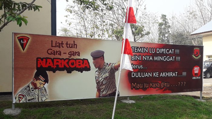 Di Markas Brimob Polda Jabar yang terletak di Desa Cikeruh, Kecamatan Jatinangor, Kabupaten Sumedang pun tak lepas dari imbauan-imbauan untuk tak menggunakan barang haram tersebut.