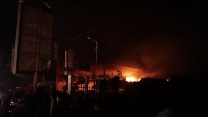 TRIBUNJABAR.CO.ID, LANGSA - Api berkobar di area kamar mandi belakang SPBU Harapan di Jalan Ahmad Yani Gampong Jawa, Kecamatan Langsa Kota, Langsa, Minggu (12/11/2017).