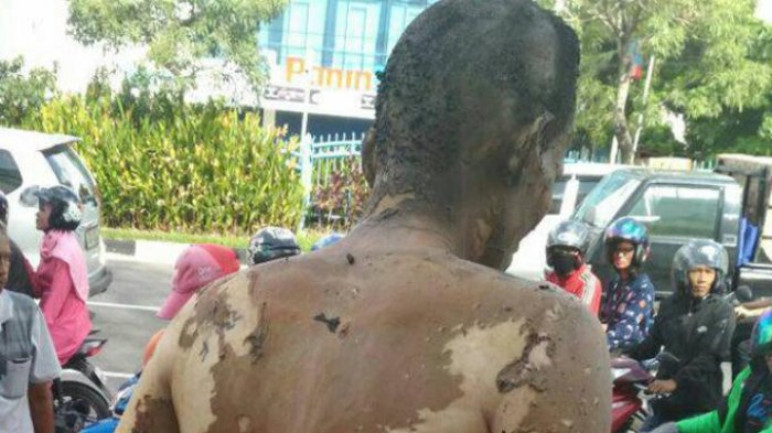 Diduga dipicu masalah hutang, seorang lelaki nyaris tewas terbakar, Sabtu (25/11/2017).