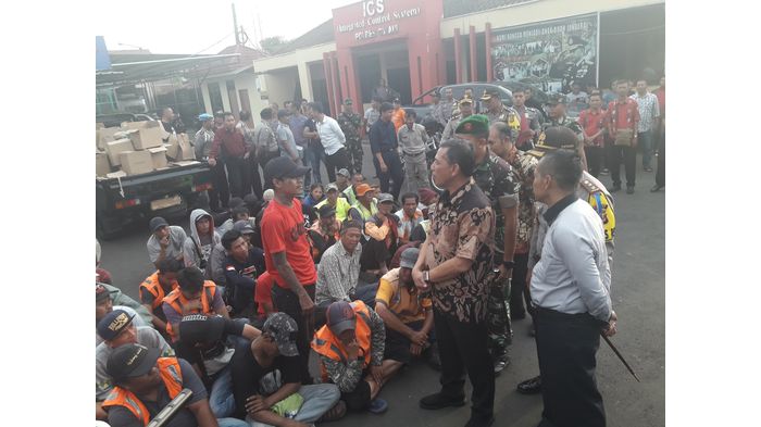TRIBUNJABAR.CO.ID, CIMAHI - Sebanyak 83 orang yang diduga terkait dengan aksi pemanisme diamankan di halaman Mapolres Cimahi, Jalan Amir Machmud, Kamis (28/12/2017).