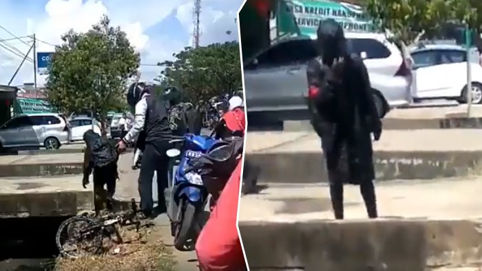 Dalam video yan diunggah akun Facebook Yuni Rusmini, Minggu (4/3/2018), pelajar tersebut diduga tercebur saat sedang mengendarai sepeda.