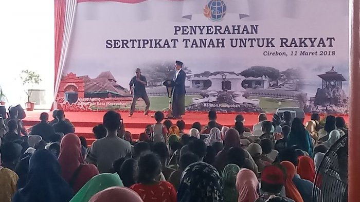 Jokowi pun melakukan hal serupa saat menghadiri Penyerahan Sertifikat Tanah untuk Rakyat di The Radiant, Jl Cirebon - Kuningan, Kecamatan Beber, Kabupaten Cirebon, Minggu (11/3/2018).