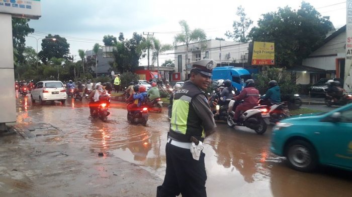 Sempat Terendam Banjir, Kini Air di Jalan Masuk Antapani Surut, Namun Lalu Lintas Macet Total