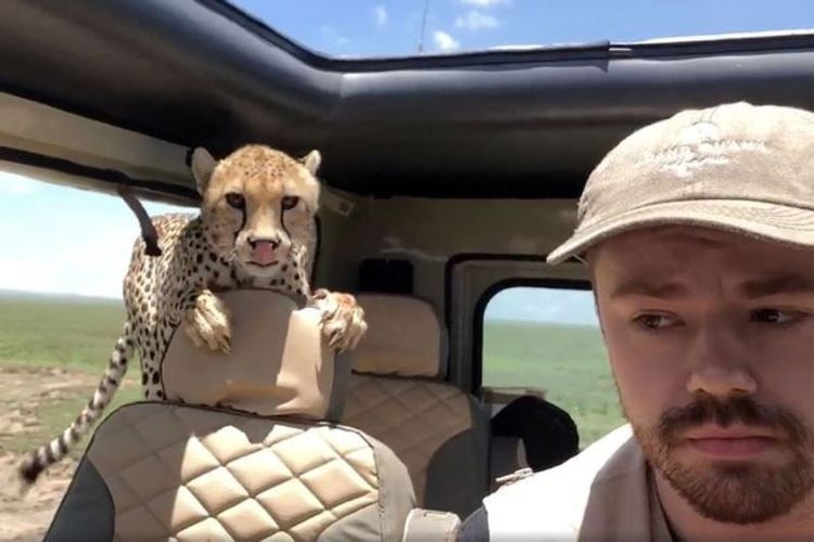 TRIBUNJABAR.ID - Seorang turis bernama Britton Hayes sempat shock setelah kendaraan tur nya kedatangan tamu tak diundang. Tamu tersebut bukanlah seorang manusia, namun seekor Cheetah.