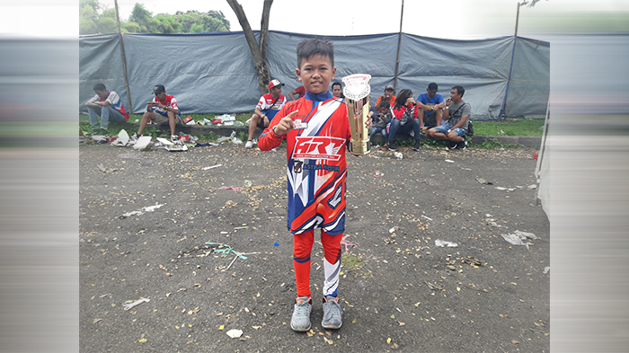Ia terlihat tidak ragu ketika saling memacu kendaraannya dengan pebalap cilik yang masih seusianya itu.