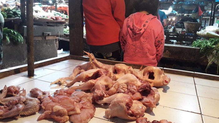 Di lokasi, beberapa daging ayam potong terlihat dijajakan di lapak pedagang.