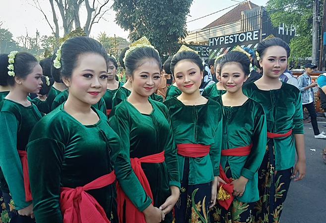Tak hanya diramaikan oleh pejalan kaki dan sepeda, tetapi ada ribuan penari dengan pakaian adat kebaya.