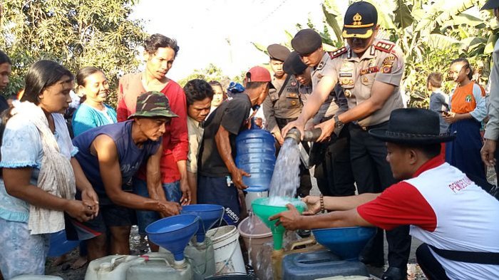 Sejumlah warga rela mengantre demi mendapatkan bantuan air bersih.