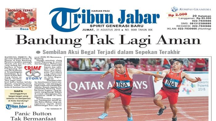Selengkapnya, baca koran TRIBUN JABAR edisi Jumat 31 Agustus 2018.