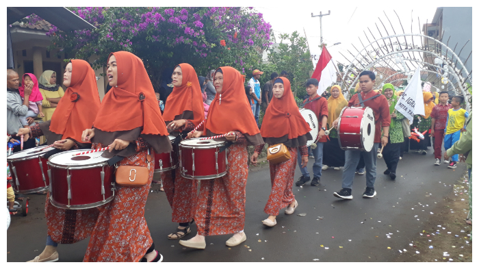 Iring-iringan pawai berkeliling disekitar kelurahan yang jauhnya hampir satu kilometer.