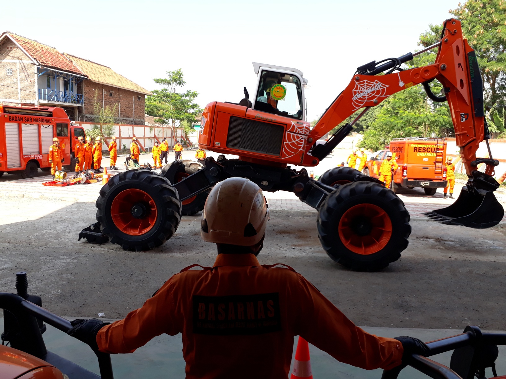 Selain satu set alat ekstrikasi, Basarnas Bandung pun, menyediakan alat spider excavator yang berfungsi untuk mengangkat reruntuhan puing-puing bangunan akibat gempa.