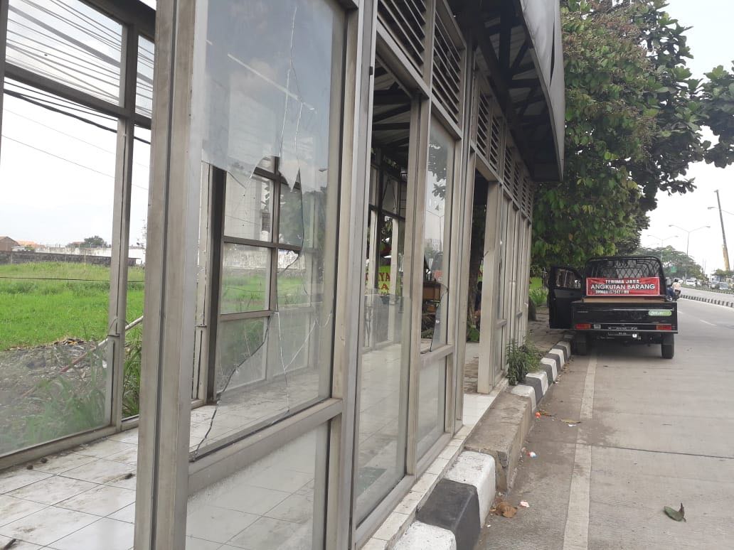 Seperti halnya halte yang berada di halte LPKIA, kaca banyak yang bolong serta banyak yang pecah.