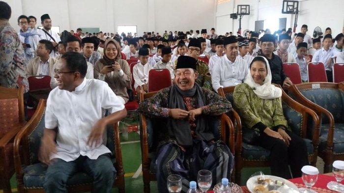 JALAN TOL. Menteri BUMN RI Rini M Soemarno, menyampaikan progres pembangunan jalan tol di hadapan ratusan santri Buntet Pesantren Cirebon, Kamis (7/3/2019).