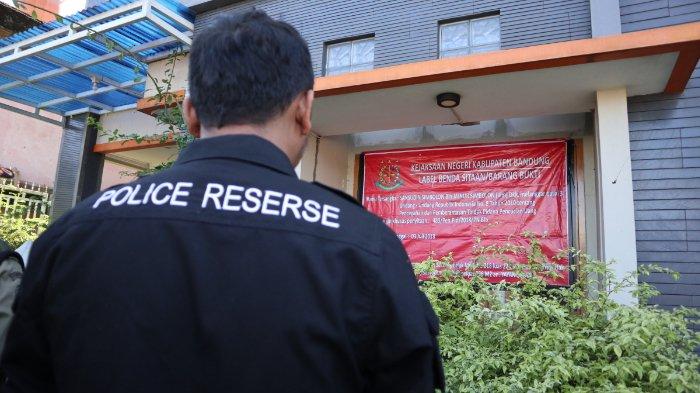 Kejaksaan Negeri (Kejari) Kabupaten Bandung memasang label benda sitaan di rumah milik Sansudin Simbolon, bos miras oplosan yang divonis 20 tahun penjara.