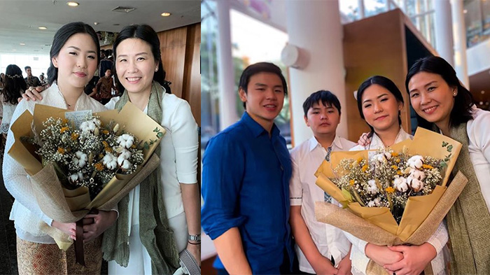 Veronica Tan tak sendiri saat mendampingi wisuda Nathania Purnama.