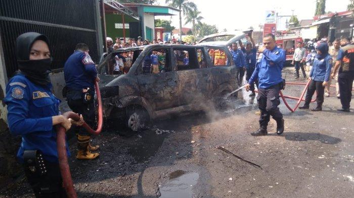 Proses pemadaman api yang membakar mobil Suzuki APV di kampung Tajurhalang, Desa Sindanglaka, Kecamatan Karangtengah