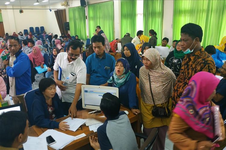 TRIBUNJABAR.ID, BEKASI - Suasana di kantor Dinas Pendidikan Kota Bekasi, di Bekasi Timur, tampak ramai, Selasa (2/7/2019).