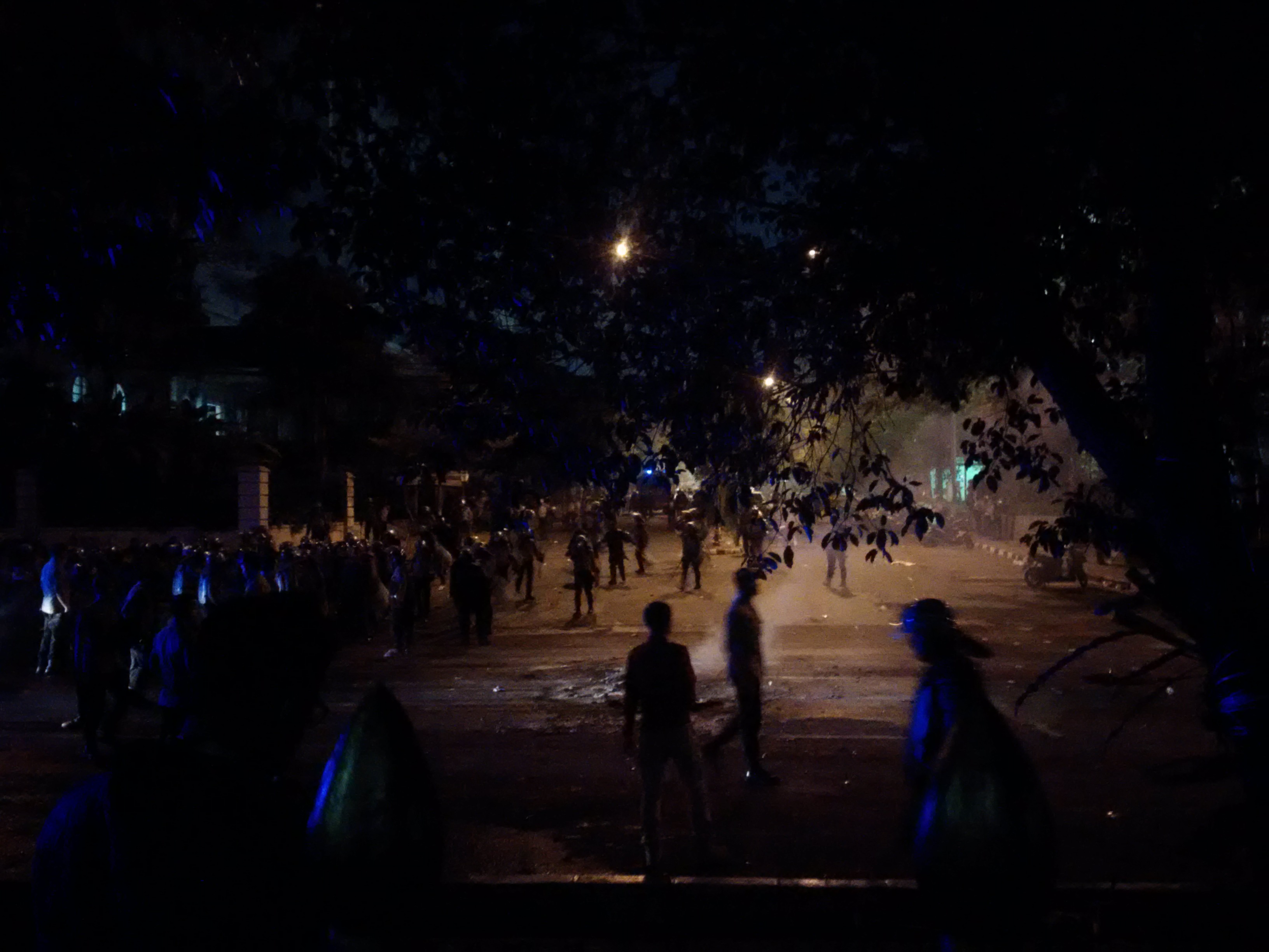 Kelompok tersebut saat berunjuk rasa, berakhir dengan ricuh sekitar pukul 16.00 dan pukul 20.00. Saat itu, massa pelajar juga hadir.