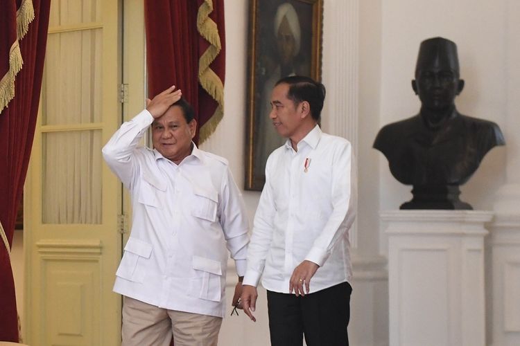 TRIBUNJABAR.ID - Momen tak terduga terlihat di Istana Kepresidenan. Ketua Umum Partai Gerindra Prabowo Subianto tiba-tiba muncul mengenakan kemeja putih.