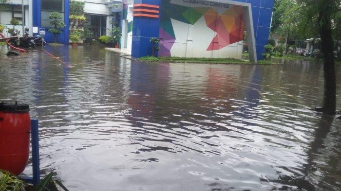 TRIBUNJABAR.ID, BANDUNG - Hujan deras disertai angin kencang di Kota Bandung, Sabtu (15/2/2020) sejak pukul 13.30 WIB, menyebabkan beberapa wilayah tergenang banjir, termasuk Kantor Kecamatan Rancasari.