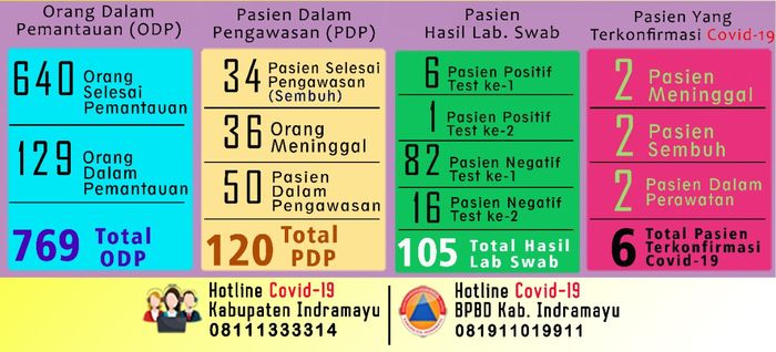 Selain itu, untuk kategori ODP di Kabupaten Indramayu pada hari ini tercatat jumlahnya mencapai 769 orang atau ada penambahan lima orang dari hari sebelumnya.