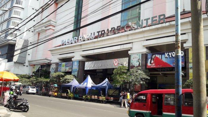 Pantauan Tribun Jabar, Minggu (14/6/2020) pada pagi menjelang siang suasana lengang karena belum dibukanya gerai di Pasar Baru Trade Center tersebut. Hanya tampak seorang petugas keamanan di depan pintu masuk utama.