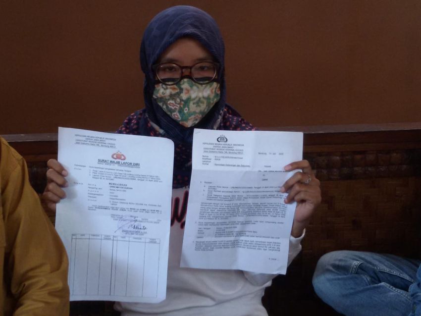 Ginna Mayori Aurora (26) saat menunjukkan laporan polisi yang diajukan oleh ayak kandungnya