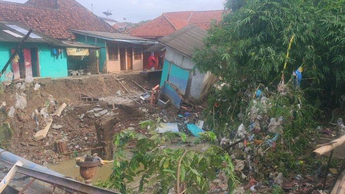 Di wilayah itu, dua rumah ambruk diterjang banjir yang melintas di Sungai Ciputis.