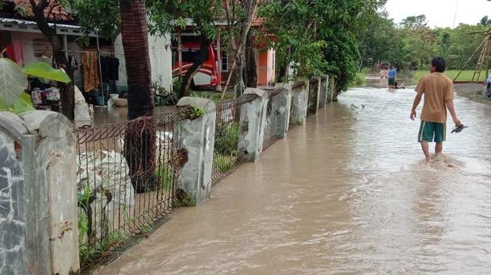 Pantauan Tribun, genangan masih merendam jalan utama masuk desa tersebut.
