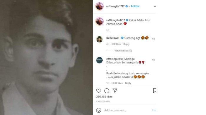 Baru-baru ini melalui unggahan Instagram, Raffi Ahmad menunjukkan potret sang kakek yang bernama Malik Aziz Ahmad Khan, Kamis (04/03/2021).