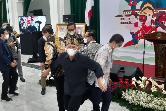 TRIBUNJABAR.ID, BANDUNG - Jabar Culture and Tourism Festival (Jafest) 2021 secara resmi dibuka oleh Menteri Koperasi dan Usaha Kecil dan Menengah Teten Masduki di Gedung Sate, Minggu (21/3).