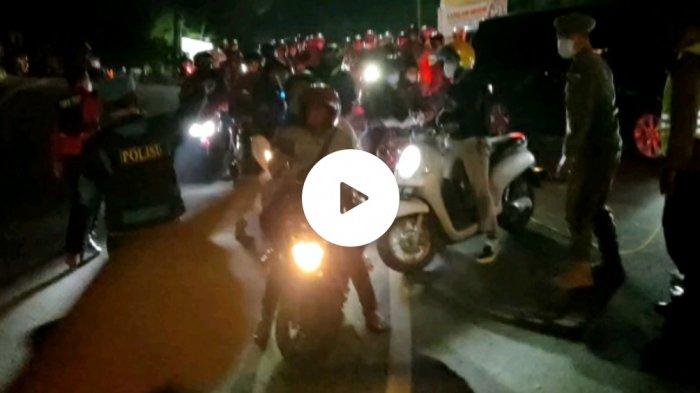 TRIBUNJABAR.ID, CIANJUR - Pos penyekatan Seger Alam Puncak Cianjur perbatasan Bogor jebol oleh ribuan pemudik bersepeda motor, Kamis (13/5/2021) dini hari.