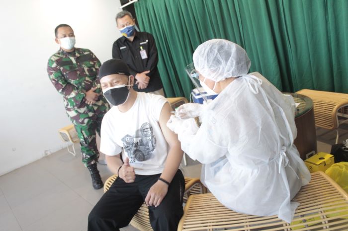 Vaksinasi itu bertajuk "Serbuan Vaksinasi Covid-19 di Bandara Husein Sastranegara Bandung".