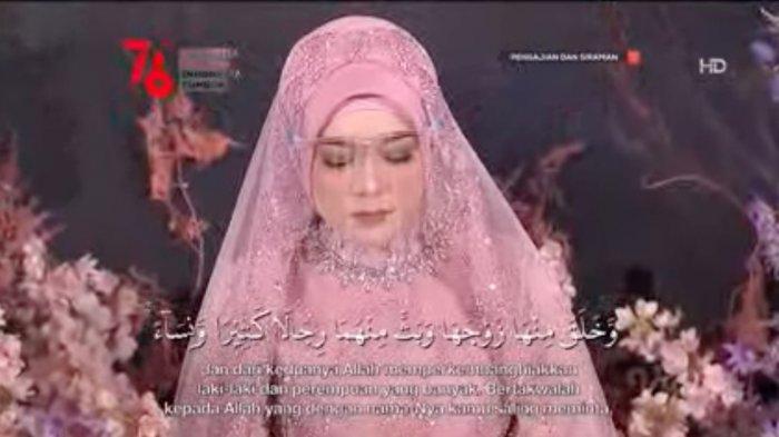 Sambil tertunduk, Lesti tampak menahan tangis namun melanjutkan bacaannya.