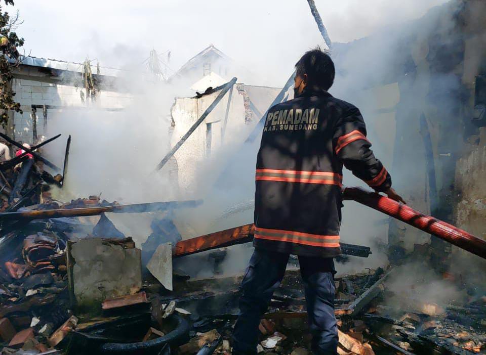 Kebakaran melanda sebuah rumah di Dusun Wadogirang RT04/ 01, Desa Wado, Kecamatan Wado, Kabupaten Sumedang, Jawa Barat, Selasa (28/9/2021) pagi.
