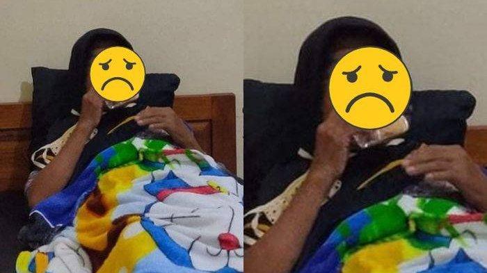 Foto pertama memperlihatkan ibu Trimah yang berjilbab hitam dan berselimut tampak sedang tiduran.