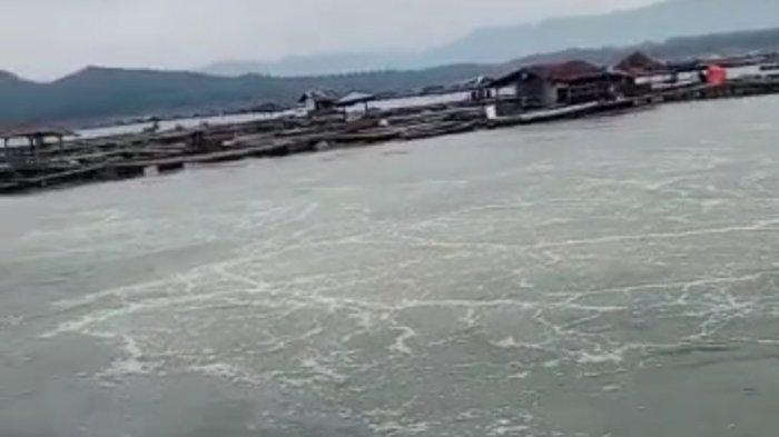 Beberapa petani sempat merekam perubahan air di permukaan yang tak jauh dari beberapa kolam jaring apung dengan telepon genggam mereka.