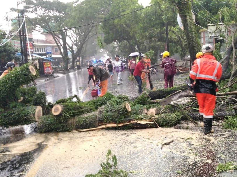 Musibah terjadi akibat hujan lebat disertai angin kencang yang melanda wilayah kota sejak pukul 14.30.
