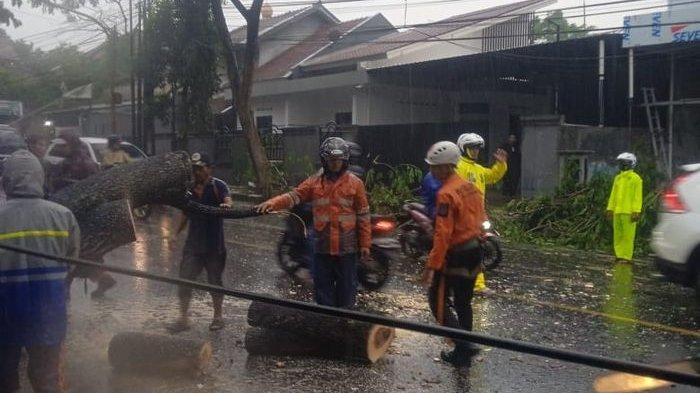 Pohon Trembesi Tumbang dan Melintang di Jalan Sudirman, Kendaraan Terjebak Macet Hingga 1 Kilometer